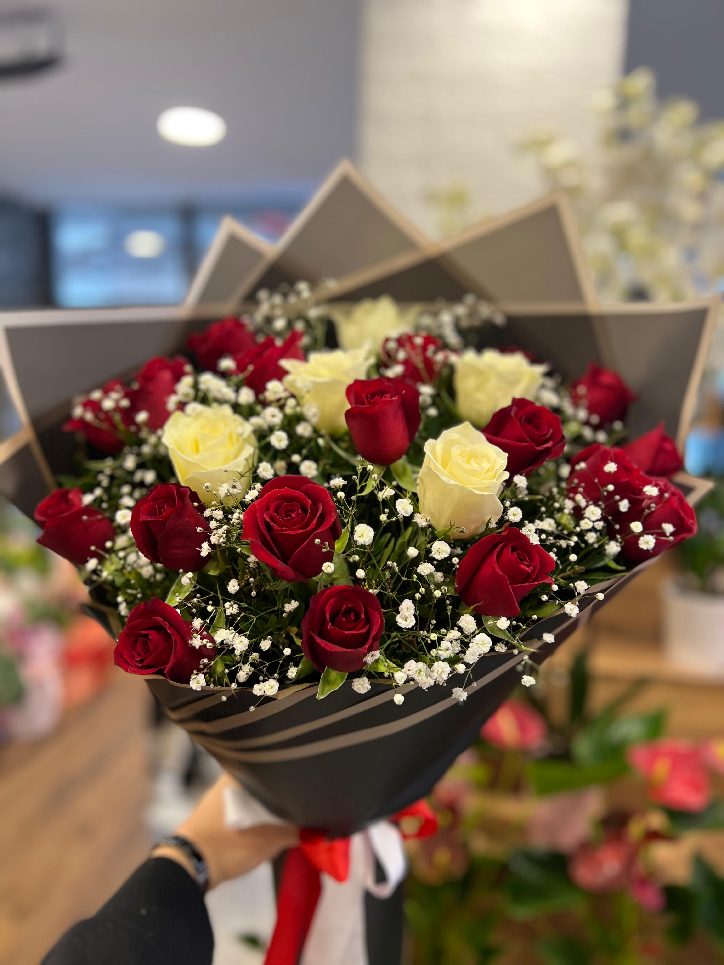 18 kırmızı , 5 beyaz gül