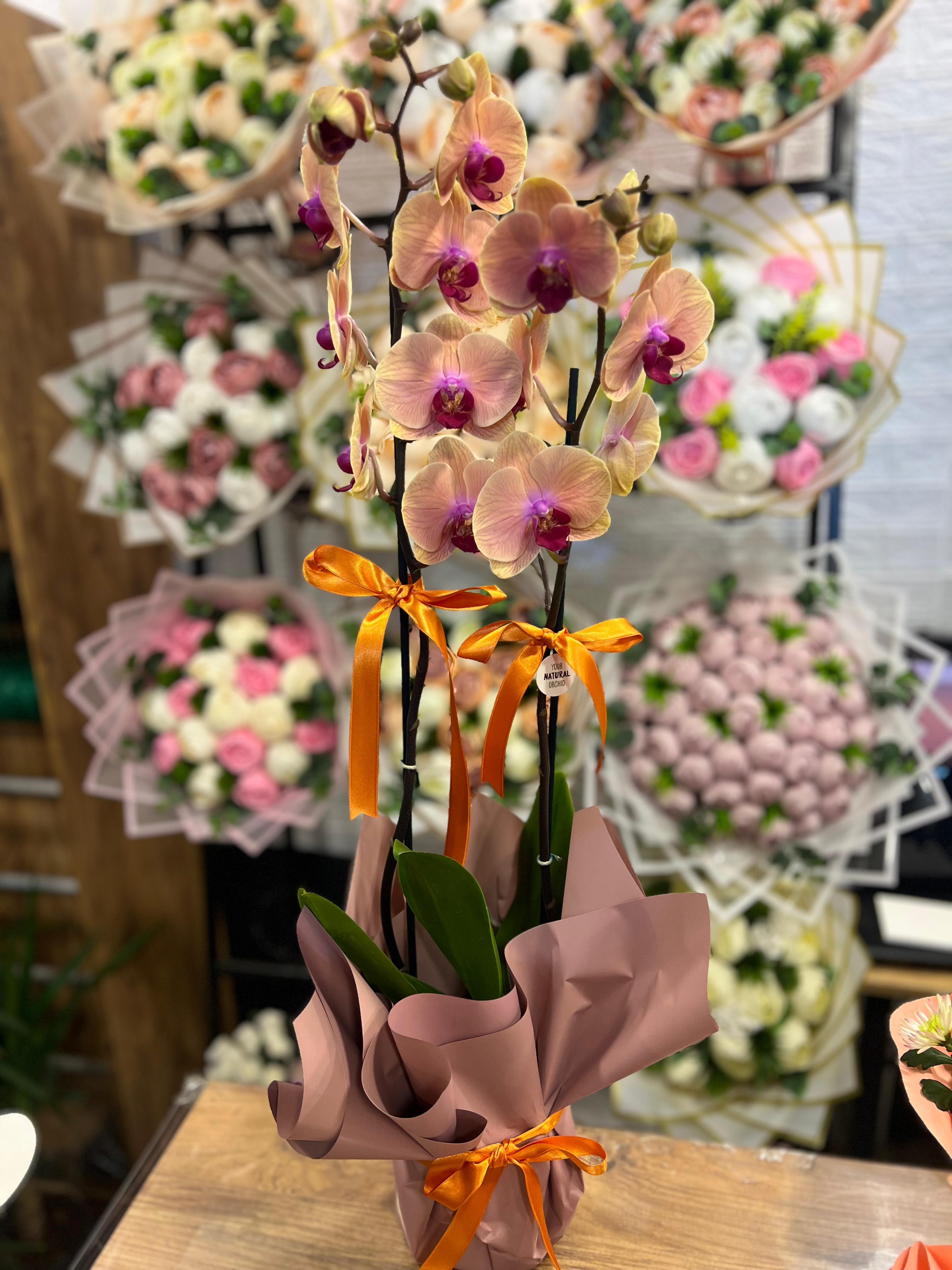 seramik saksıda çift dal orkide