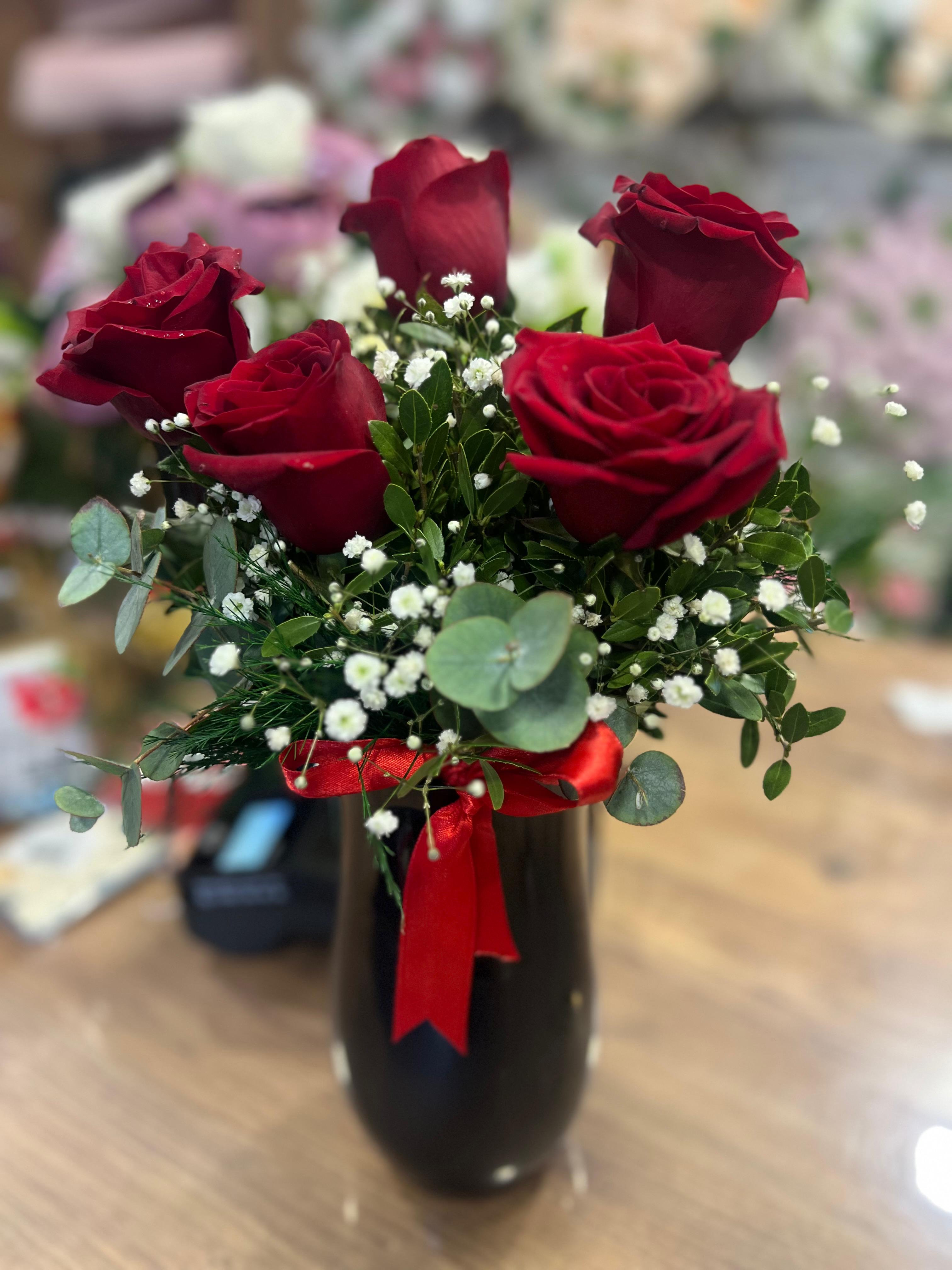 5 adet canlı kırmızı gül