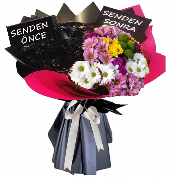 10 adet canlı siyah gül ve papatyalar